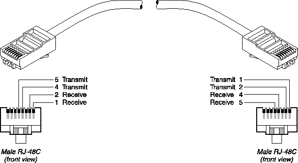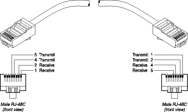 Install this cable when the WAN interface transmits on pins 5 and 4 and receives on pins 2 and 1. Refer to Figure C-7 and Table C-12.